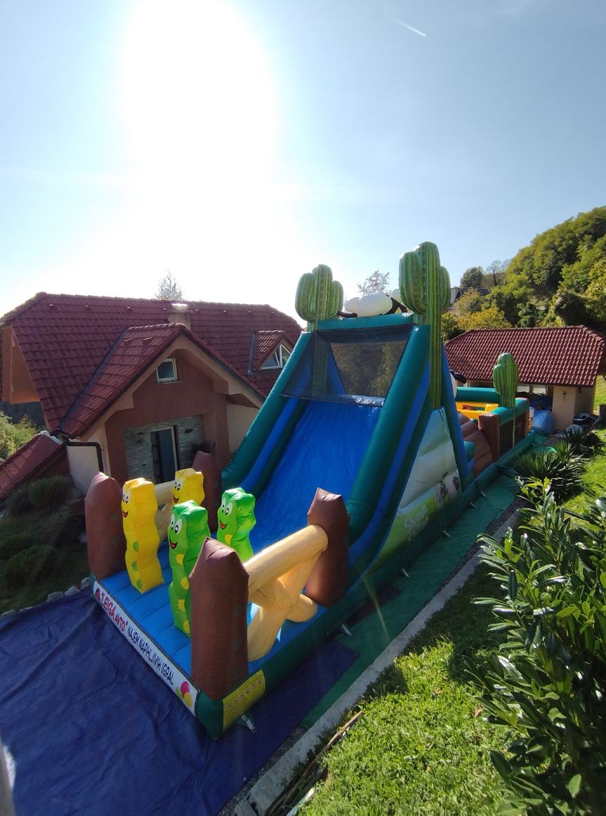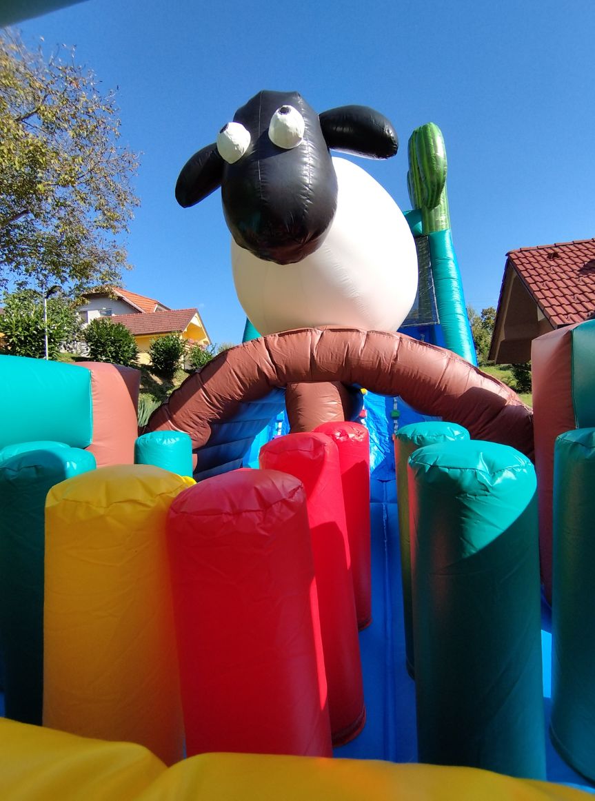 Na vhodu poligona tekmovalca pozdravi kuža iz risanke Bacek Jon. Ob njegovi levi in desni strani sta dva tunela, skozi katera se tekmovalca poženeta v svet zabave in pustolovščino skozi razne ovire, ki vodijo do plezalne stene, ki ji sledi spust po velikem toboganu